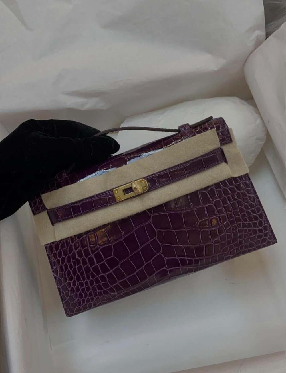 حقيبة هيرمز جلد التمساح باللون البنفسجي الغامق