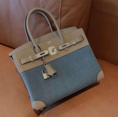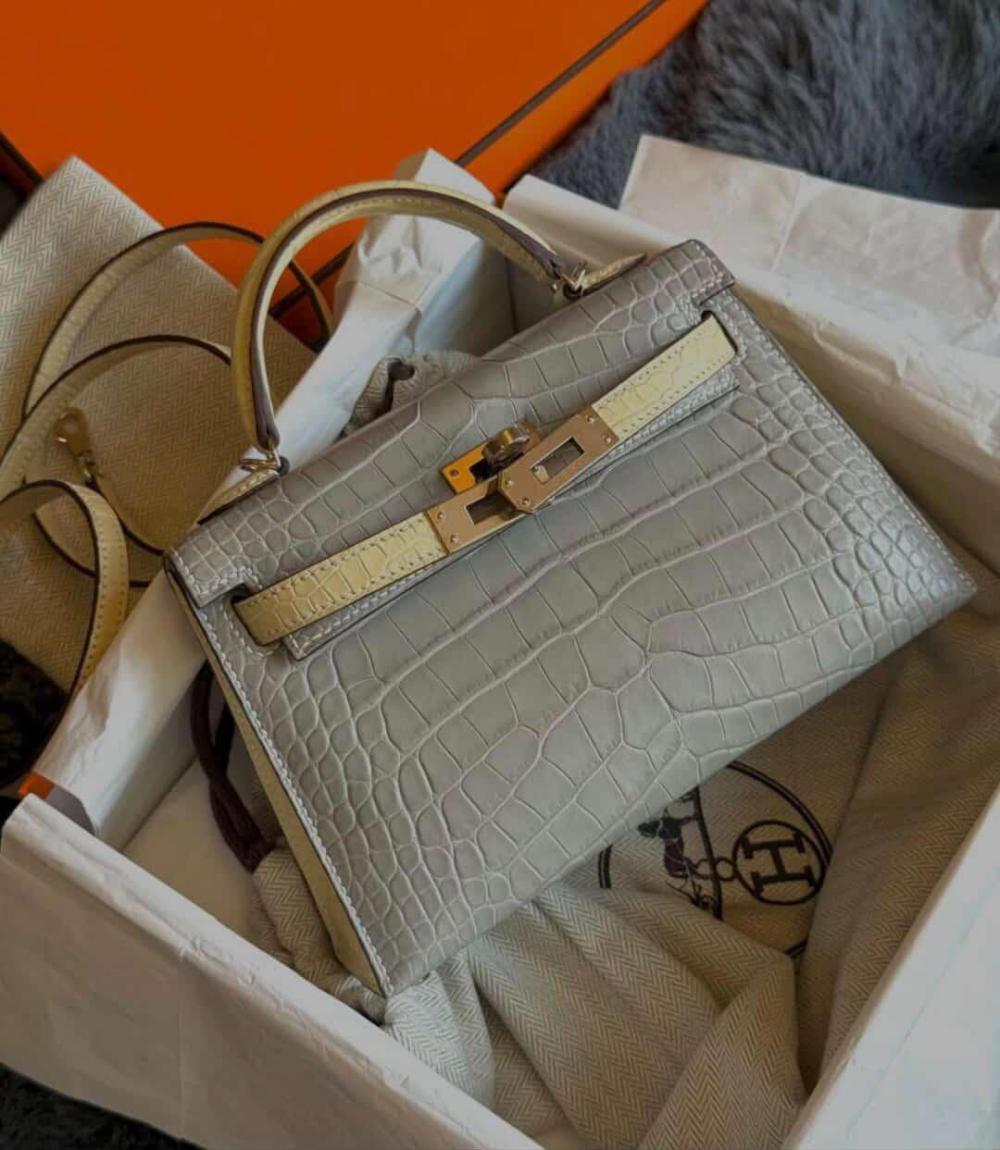 حقيبة هيرمز مع جلد التمساح باللونين الاصفر والرمادي