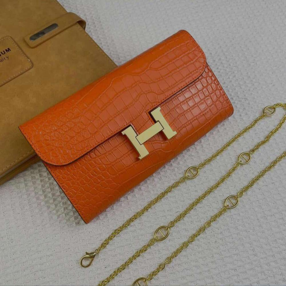 محفظة هيرمز باللون البرتقالي يمكن ارتدائه بطريقتين :