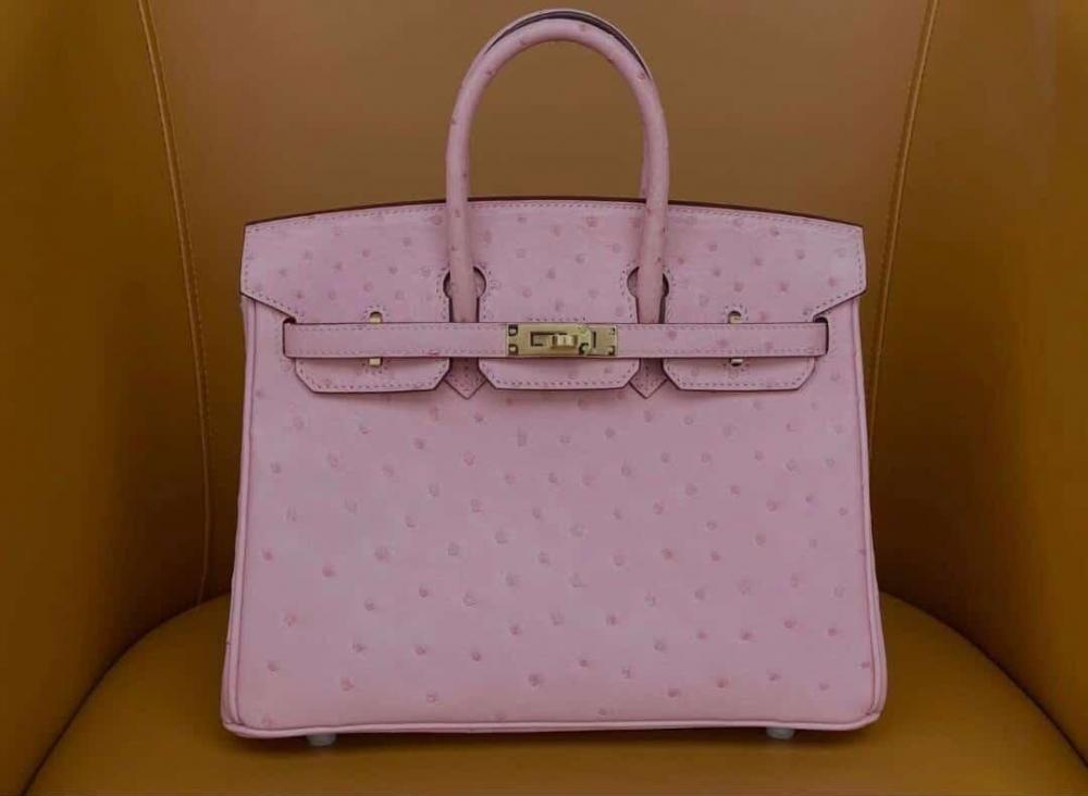 حقيبة هيرمز باللون الوردي مع جلد النعامة