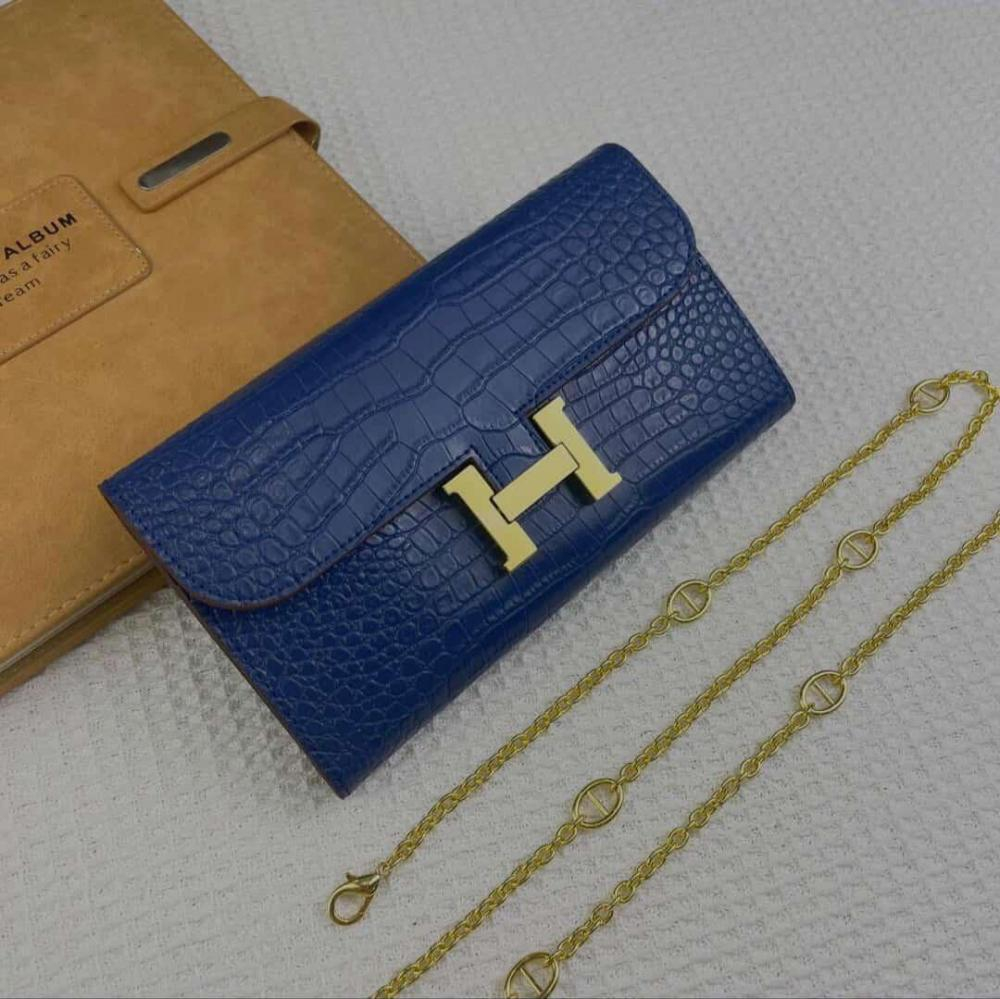 محفظة هيرمز باللون الكحلي يمكن ارتدائه بطريقتين :