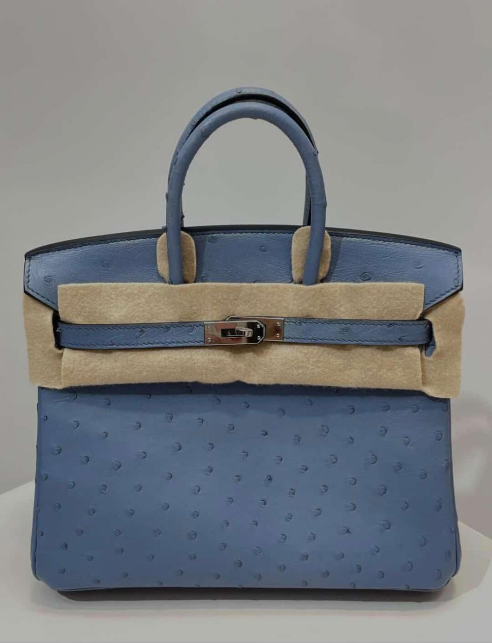 حقيبة هيرمز جلد نعامة باللون الأزرق السماوي