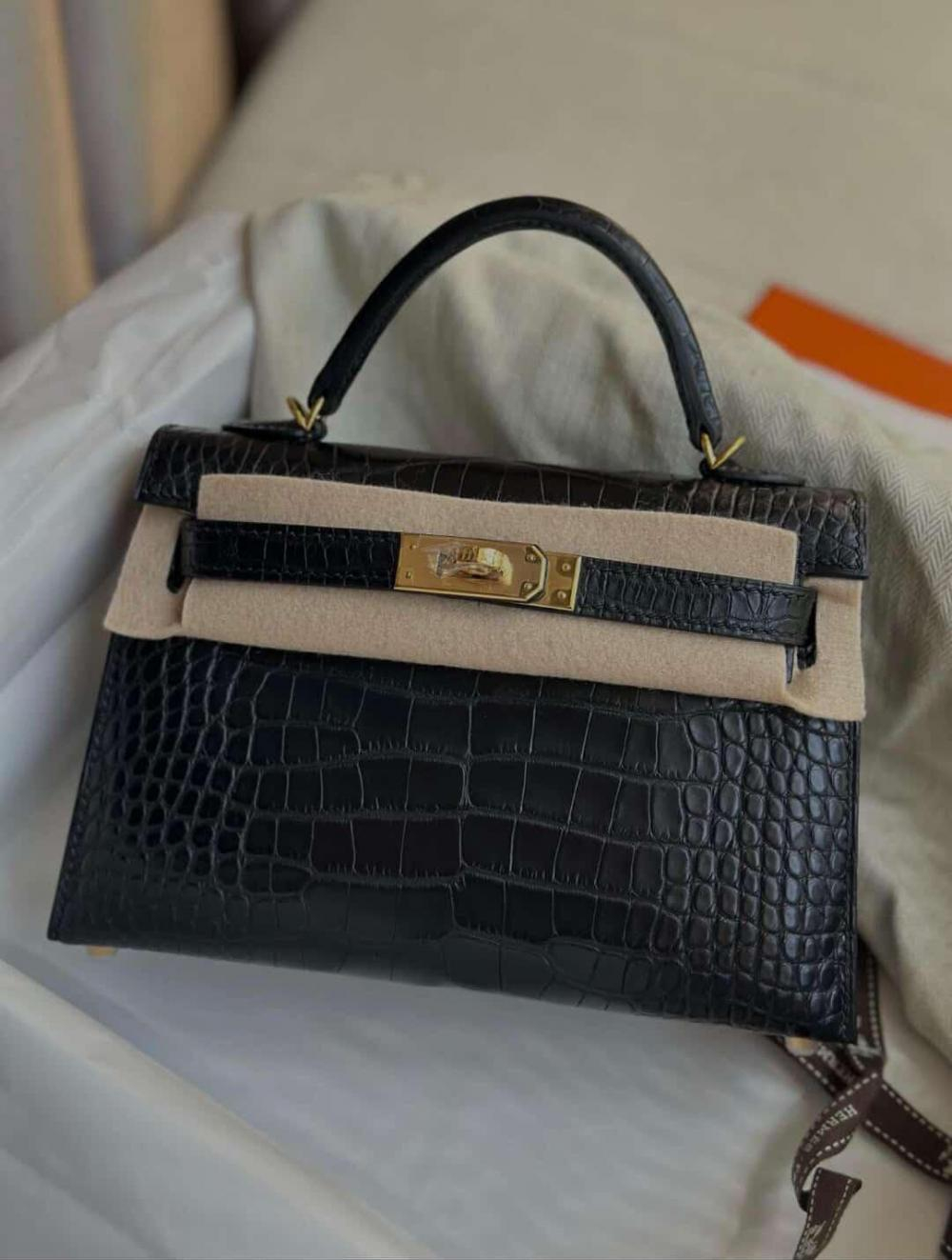 حقيبة هيرمز باللون الأسود المات وهاردوير باللون الذهبي
