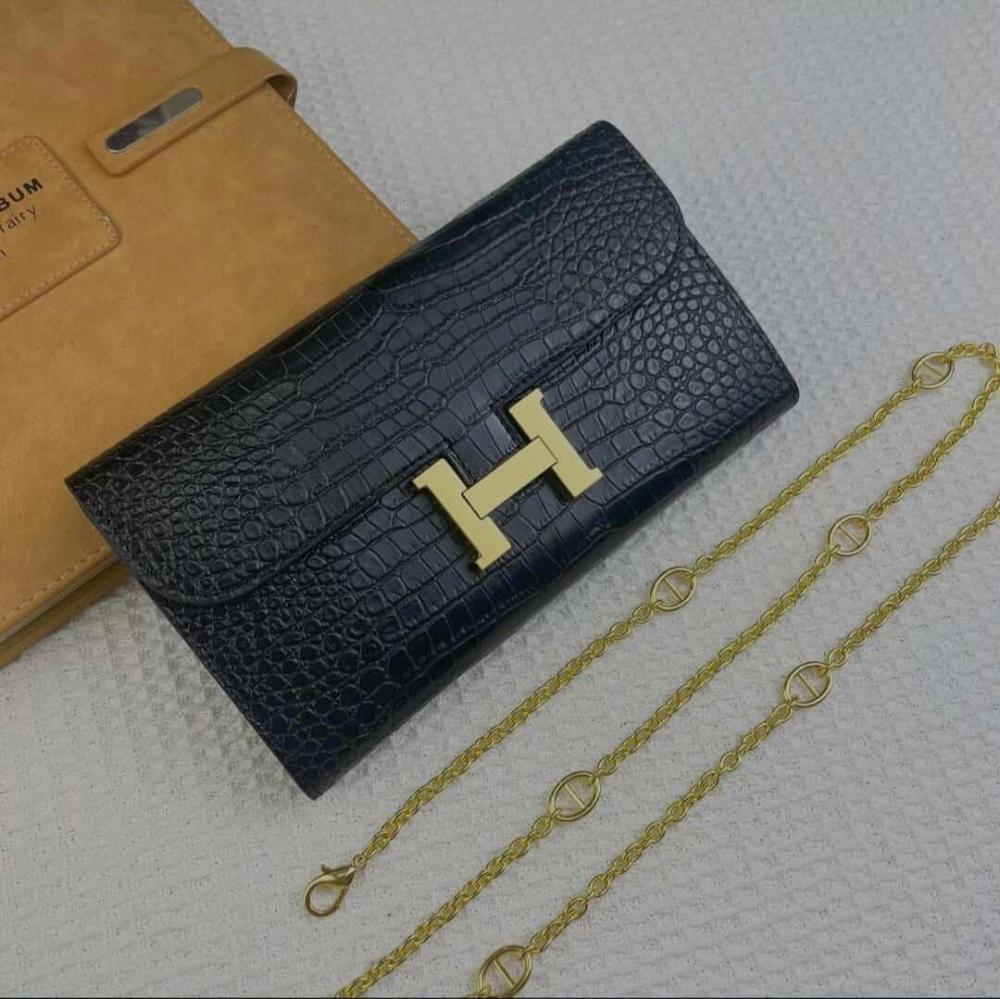 محفظة هيرمز باللون الأسود يمكن ارتدائه بطريقتين :