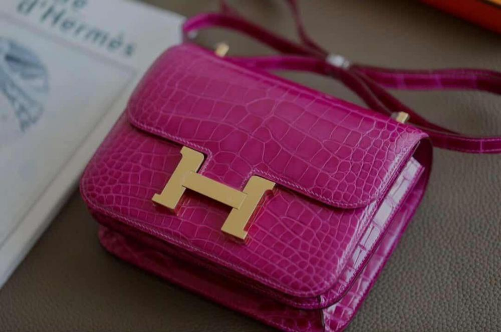 حقيبة هيرمز جلد تمساح باللون الفوشي